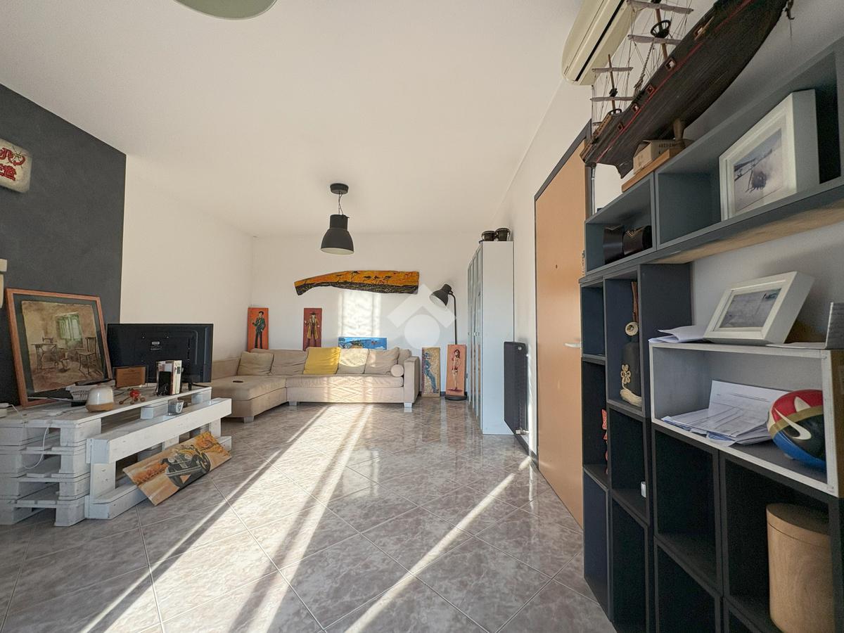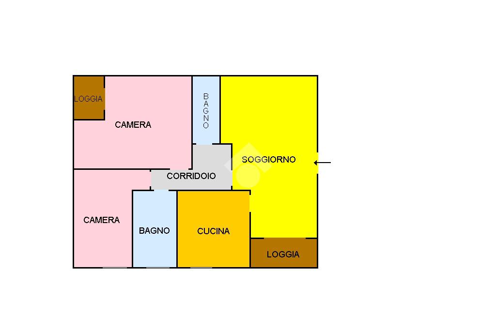 Dall'ingresso accediamo nel soggiorno luminoso di 25 mq con uscita su una loggia di circa 3 mq, la cucina di 9 mq è separata ed abitabile.