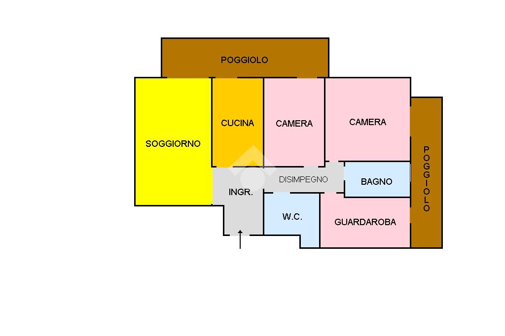 Dall'ingresso accediamo nel soggiorno di 19 mq, la cucina di 9 mq è separata ed abitabile. Entrambi gli ambienti sono collegati al poggiolo di 12 mq.