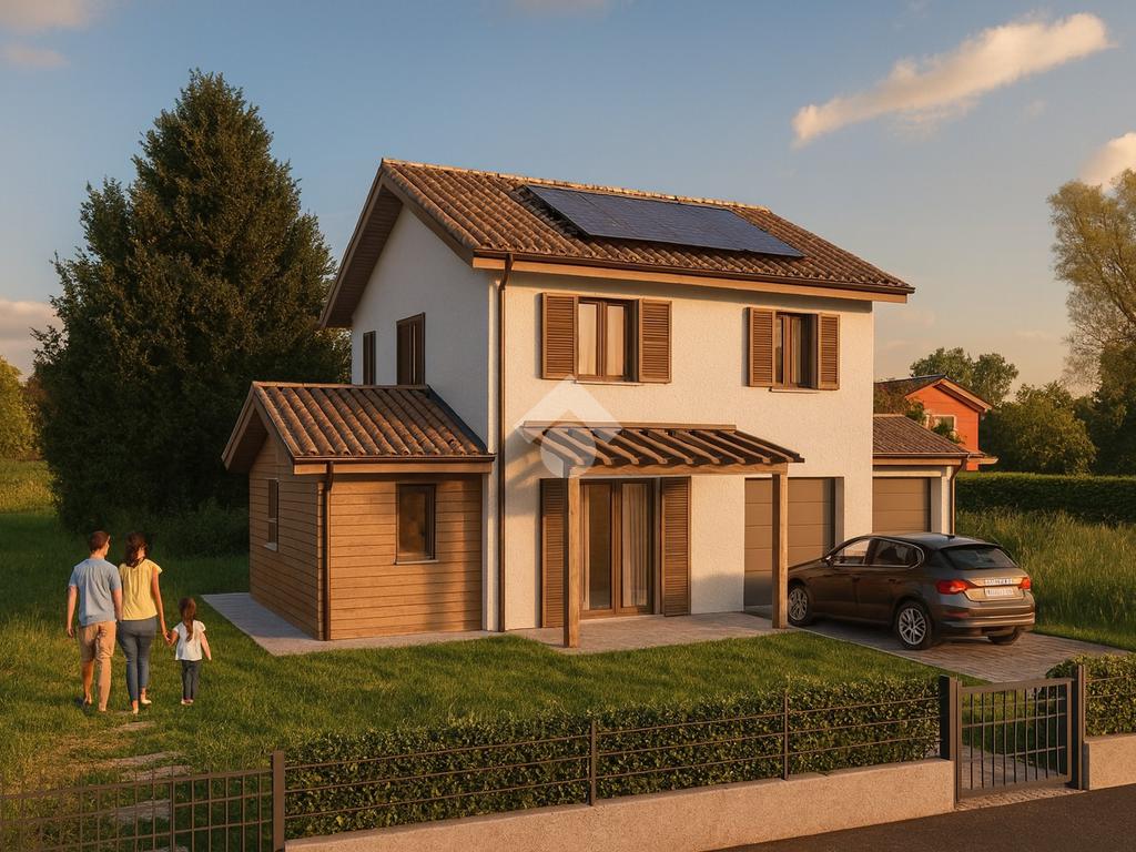 La zona, residenziale e ben servita, consente la realizzazione di una casa singola in stile tradizionale, con tetto a doppia falda e ampio giardino privato.