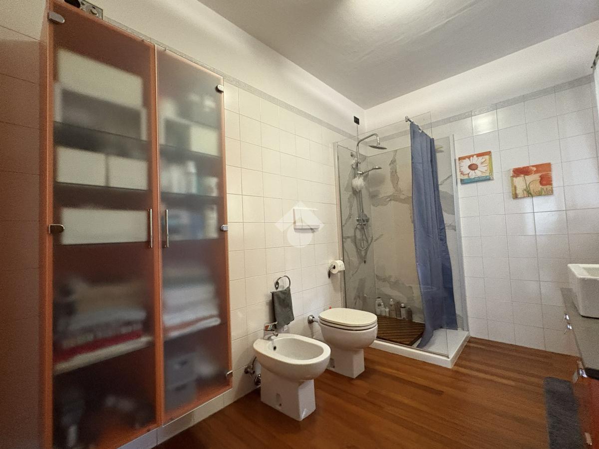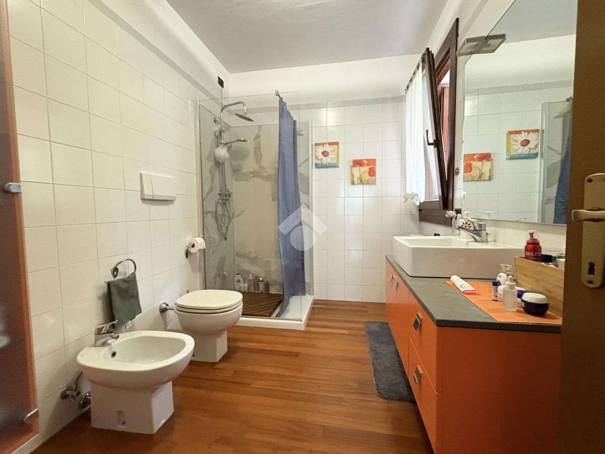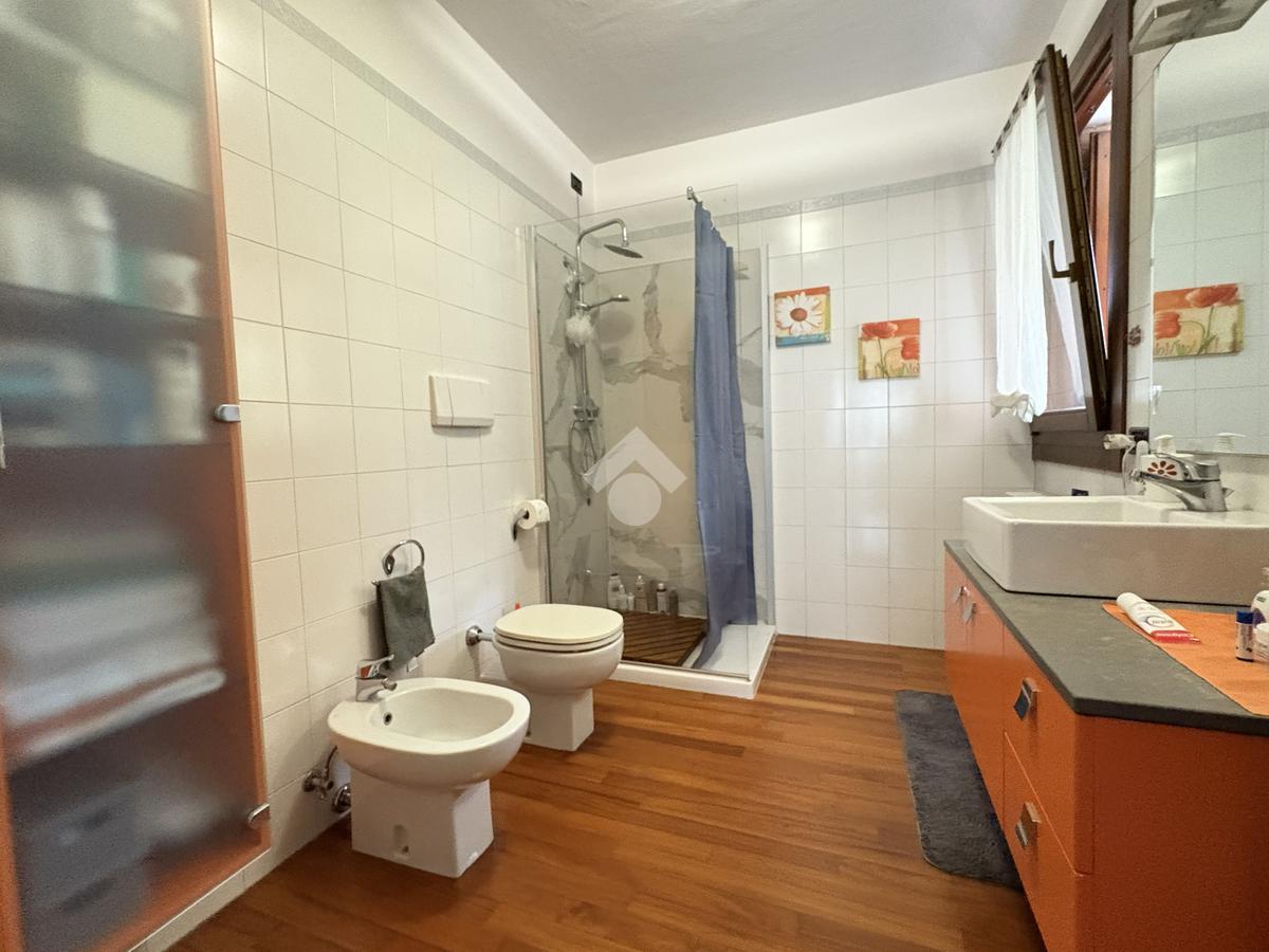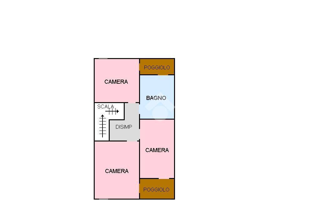 Al piano primo raggiungiamo la zona notte, la quale è composta da una camera matrimoniale di 15 mq con uscita su un poggiolo, le due camere singole rispettivamente di 11 mq, entrambe collegate ad un secondo poggiolo e il bagno finestrato con vasca anch'esso con uscita sul poggiolo.