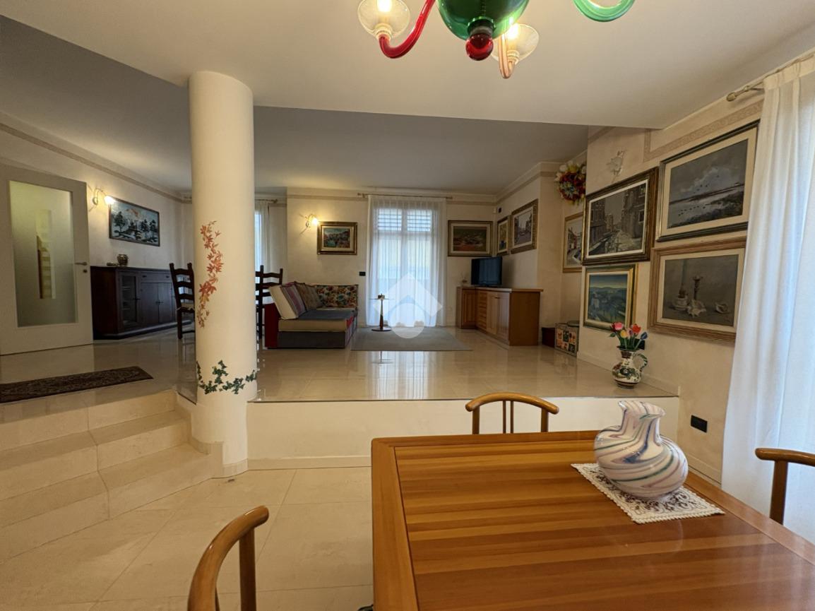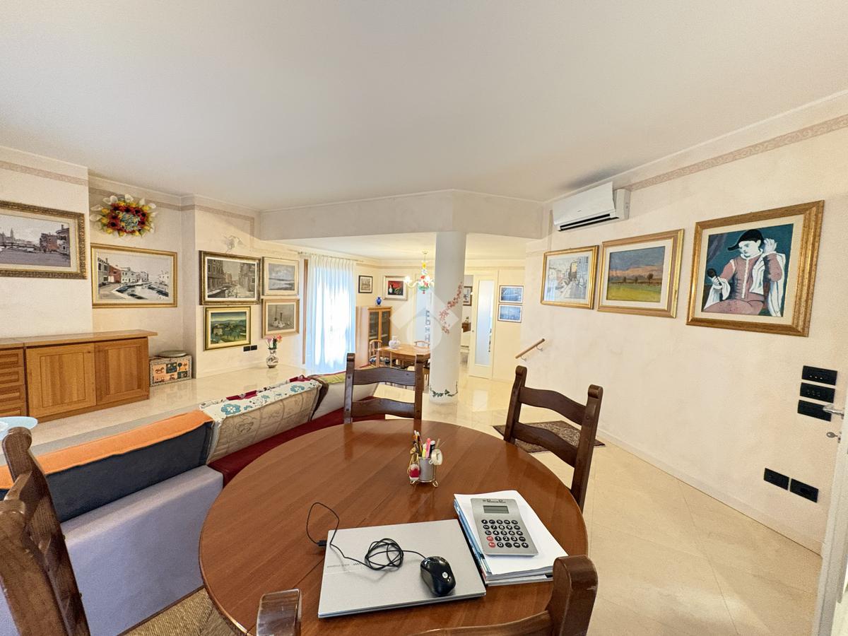 Il piano principale accoglie una zona giorno ampia e ben articolata, composta da soggiorno di circa 30 mq, sala da pranzo di 15 mq separata dalla cucina abitabile di circa 17 mq, con affacci diretti su portico e loggia esterna.