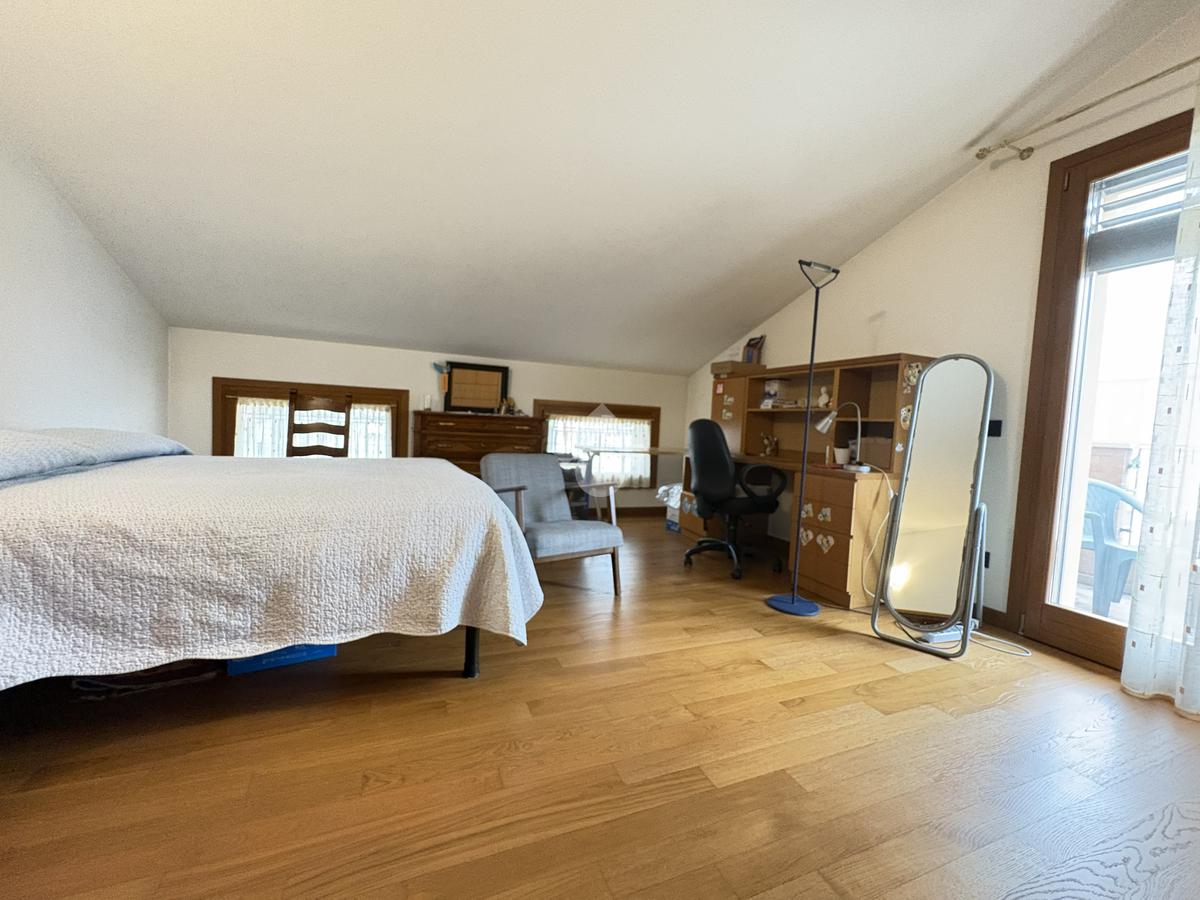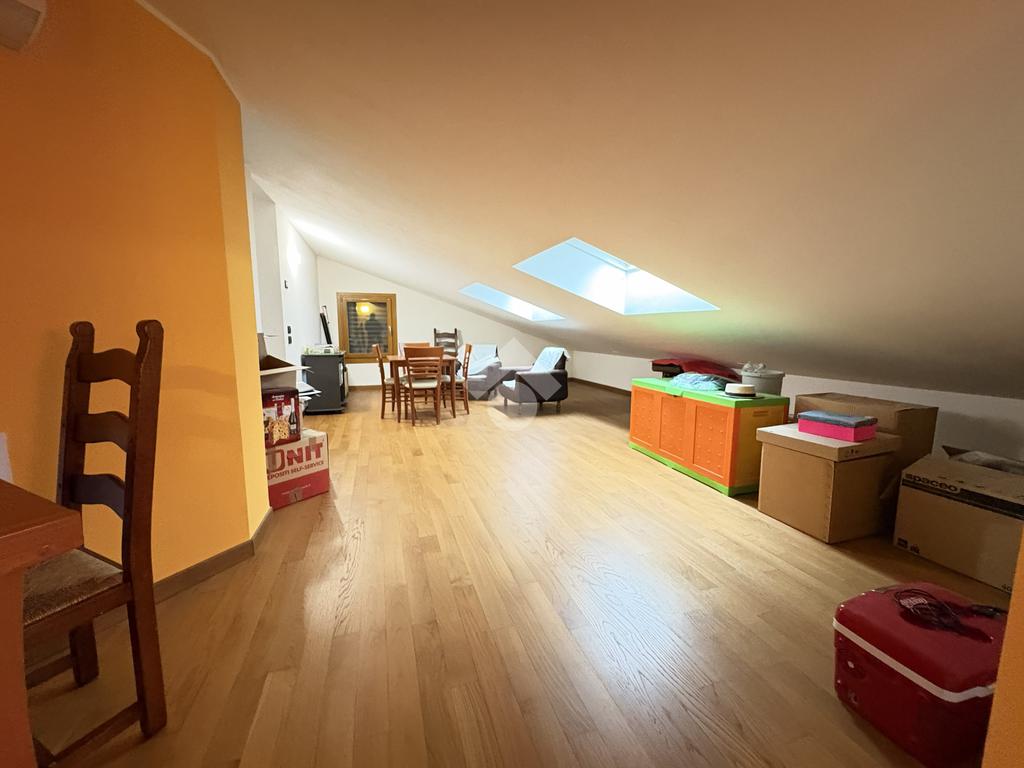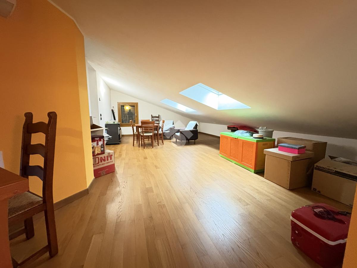 Il livello superiore ospita ulteriori locali mansardati, sfruttabili come camere, studio o zona hobby, oltre a bagno e spazi accessori sottotetto. Presente poggiolo con affaccio esterno, che garantisce luce naturale e sfogo visivo.