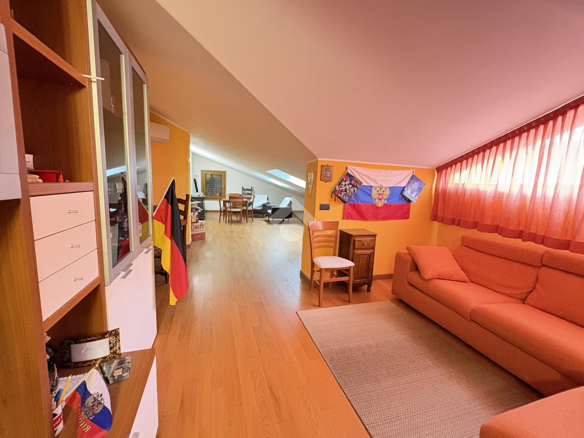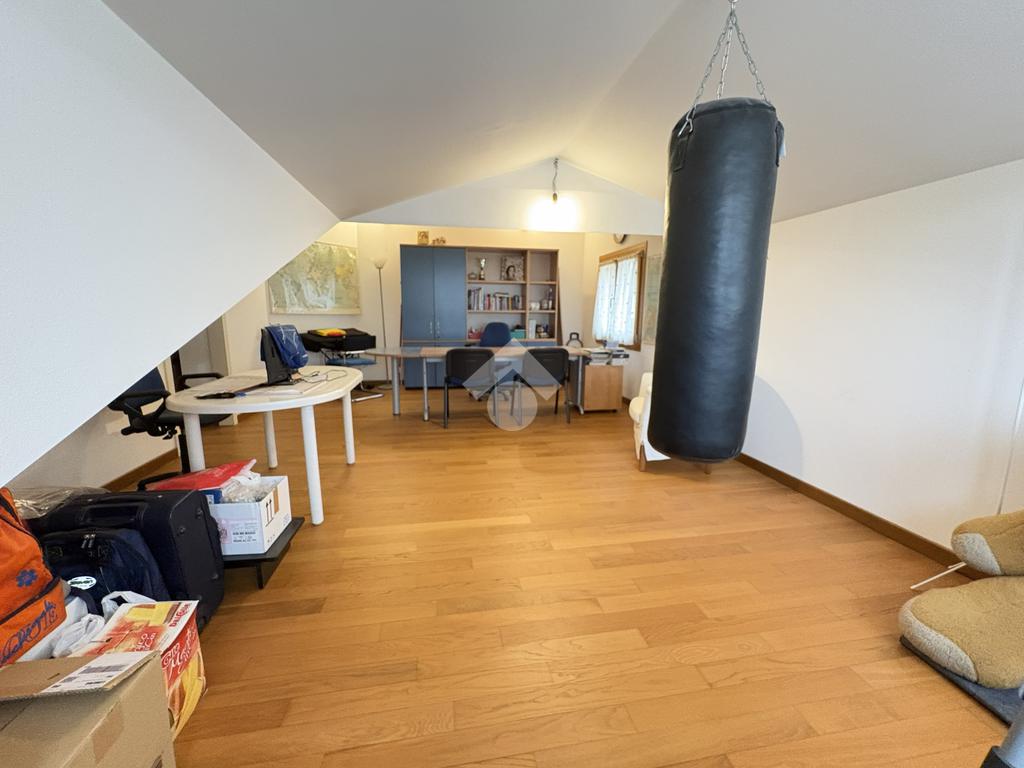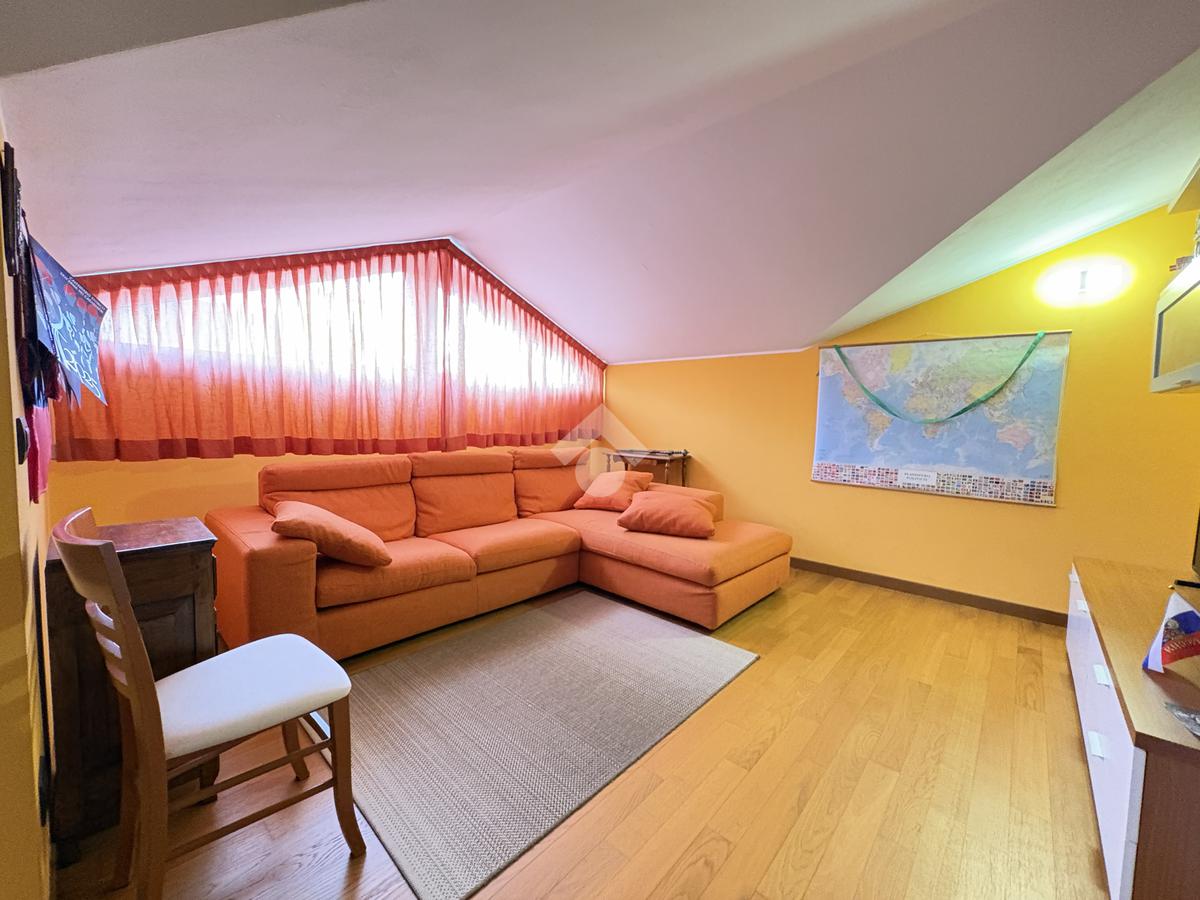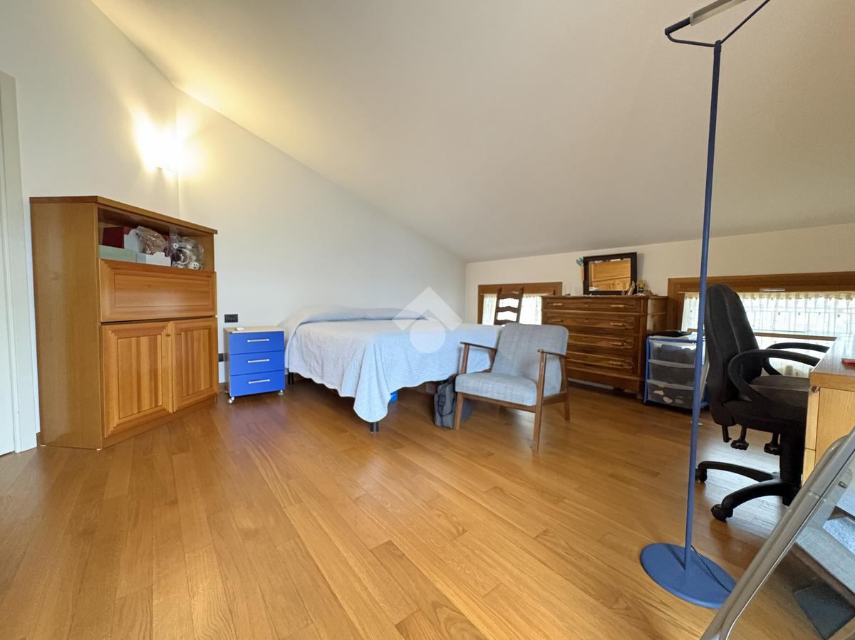 Il livello superiore ospita ulteriori locali mansardati, sfruttabili come camere, studio o zona hobby, oltre a bagno e spazi accessori sottotetto. Presente poggiolo con affaccio esterno, che garantisce luce naturale e sfogo visivo.
